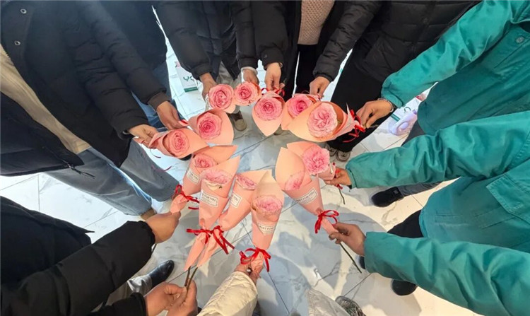 花香满襟,笑意盈盈。大家手捧鲜花,肩并肩围拢成一个温暖的圆圈,拍下最唯美的画面,将此刻的灿烂与未来的期许,一同定格在春日的暖阳里。