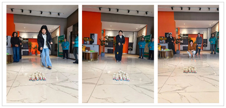 活动现场气氛热烈,趣味游戏环节将欢乐推向高潮。“蒙眼直线走”考验着大家的方向感与信任度,行走的过程引得笑声不断;“弹球夺宝”中,小球在纸杯间跳跃,每一次精准入杯都伴随着欢呼与惊喜;传统“投壶”游戏更是让大家重温古韵,比拼眼力与定力。