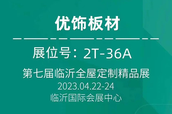 优饰展位号:2T-36A 第七届临沂全屋定制精品展 第七届中国(临沂)全屋定制精品展览会将于2023年4月22日-24日在临沂国际会展中心举办。 优饰板材展会号:2T-36A,欢迎各位朋友来优饰展位看.....